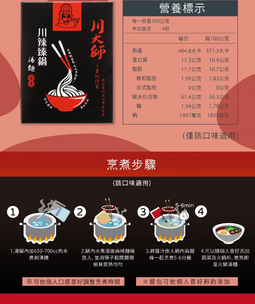 注意事項:產品內醬料包若發現破損或膨包現象切勿食用,請致電公司服務專線處理。