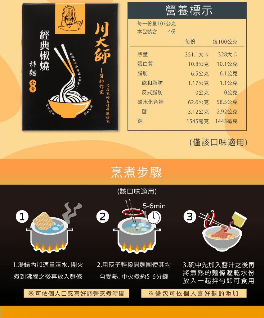 【品名】:川大師經典椒燒拌麵